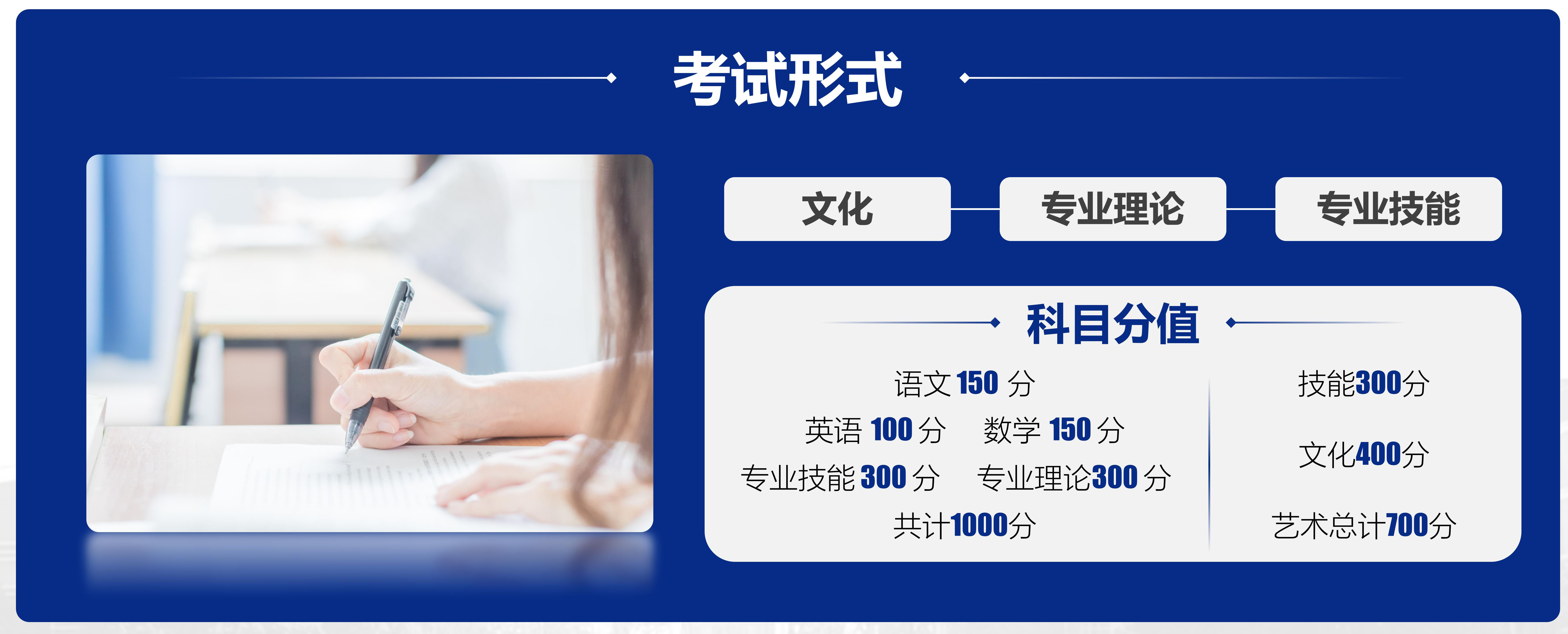 考核分值:文化400分:语文150分,数学150分,英语 100分;