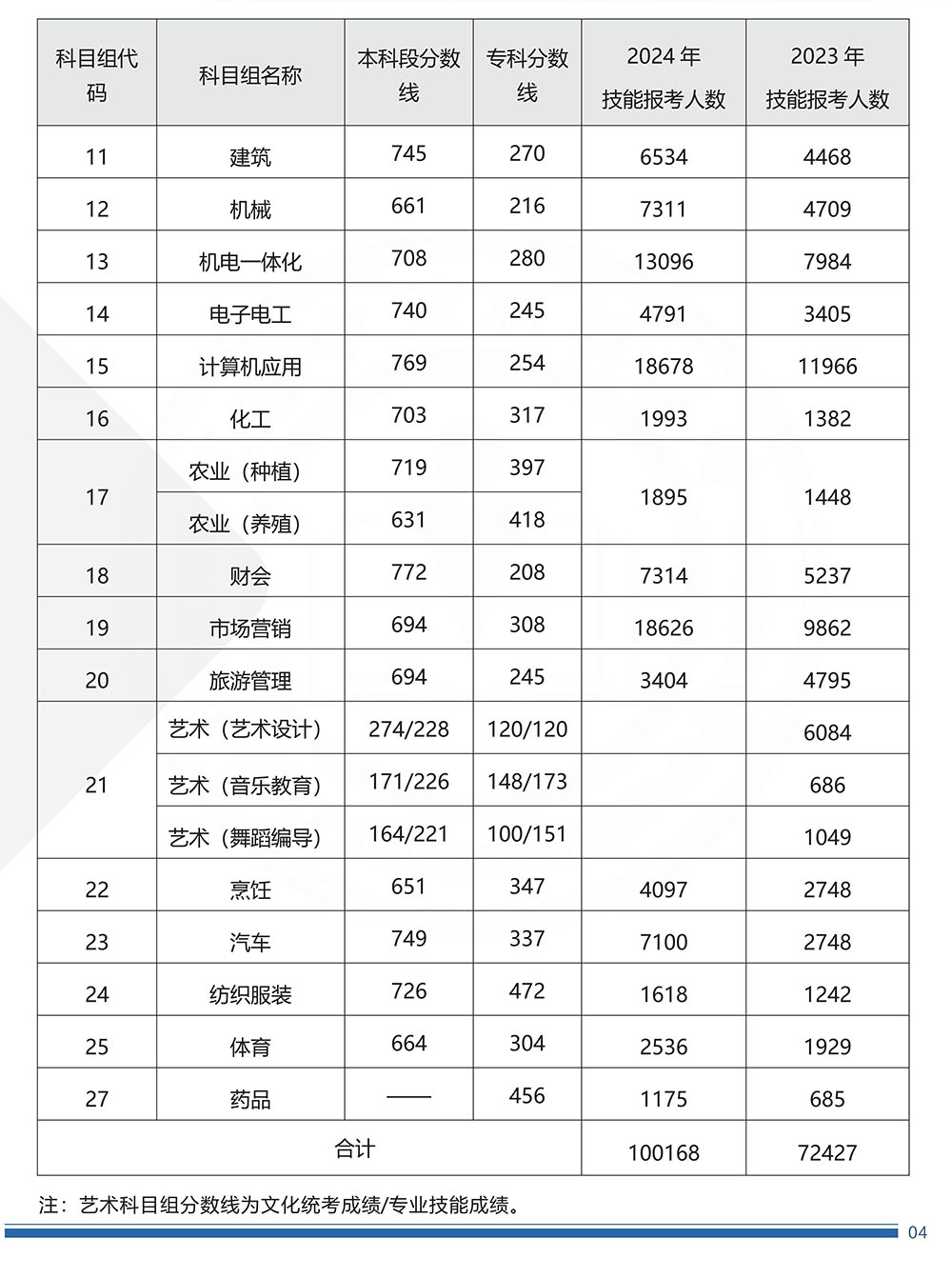 艺术类文化400分,技能300分,总计700分。